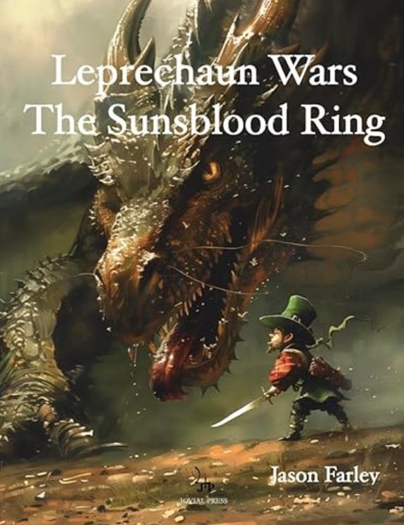 A friend of mine wrote a rip-roaring little tale titled Leprechaun Wars: the Sunsblood Ring. A cover like that deserves prime placement on the mantle, but the story will keep it hot in the hands of readers. Go pick it up.